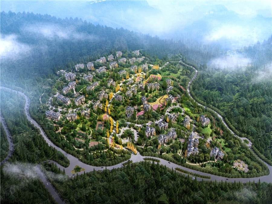 温泉设计方案:项目位于洪雅县高庙古镇,距离峨眉山景区零公里区3.5公里的半山七里坪国际避暑度假区内,海拔约1300米,周边拥有几乎原始的农耕文化和世界级遗产分布,这里山深林密,遗世独立,世界自然和文化遗产,佛、道、儒文化在这里交汇,具有鲜明的“雅、幽、真”等天然优势,定位为世界级的避暑胜地。
